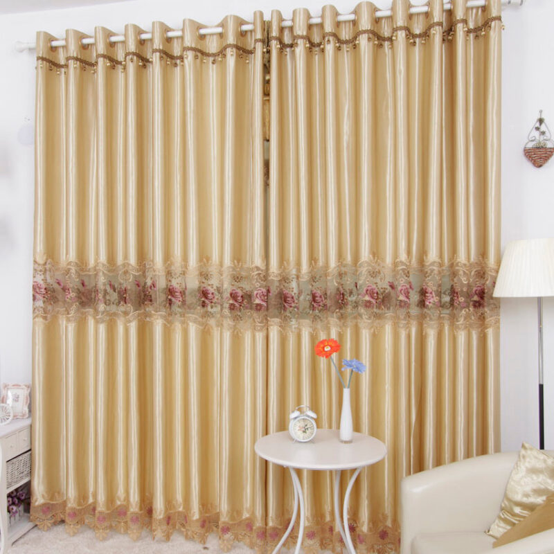 Luxury Golden Color Lace Embroidery Border Custom Curtain 144''W*84''L