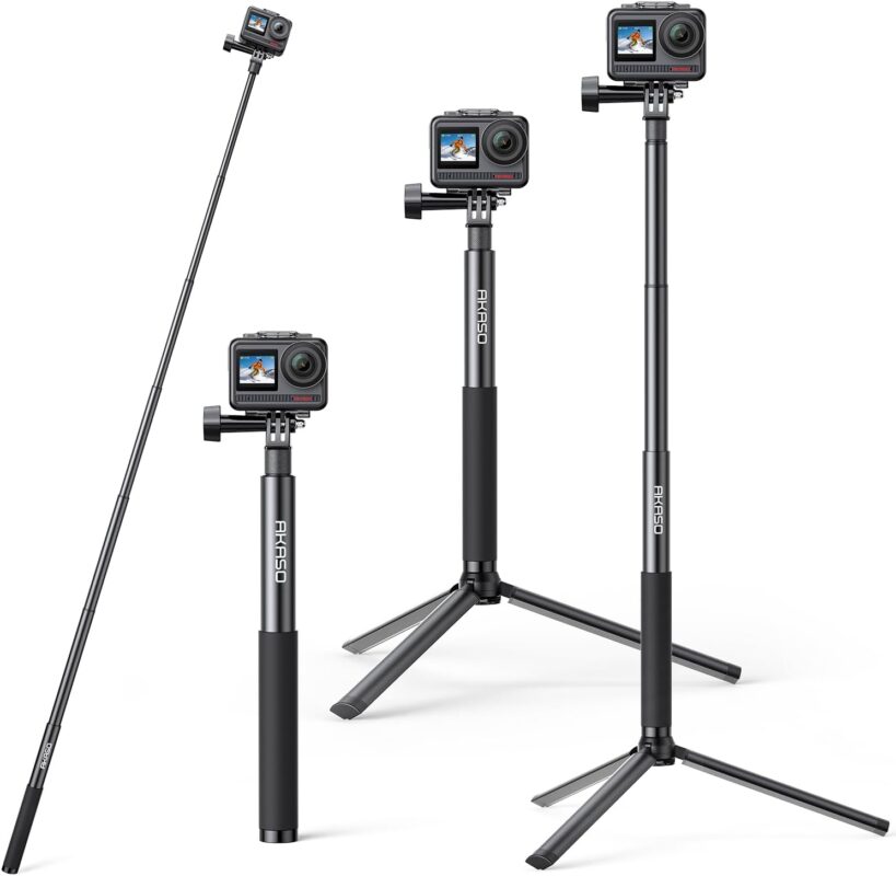 AKASO 1.2M Extendable Selfie Stick and a Tripod Stand Action Camera Accessories Compatible with AKASO EK7000/Brave 4/Brave 7 LE/Brave 7/V50X/V50 Elite/GoPro Hero 12/11/10/9/8/7/Max/DJI Osmo Action