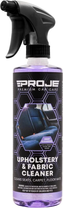 PROJE' Limpiador de tapicería y telas prémium para el cuidado del automóvil – Elimina los olores en la fuente – Spray limpiador de telas para detalles automáticos – Spray removedor de manchas para