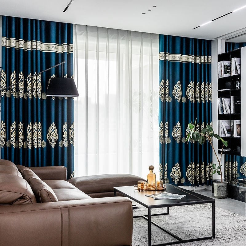 European Elegant Floral Embroidery Shading Curtains Vintage Luxurious Hollow Curtains for Living Room Bedroom Decoration Custom 2 Panels Drapes Polyester Blend