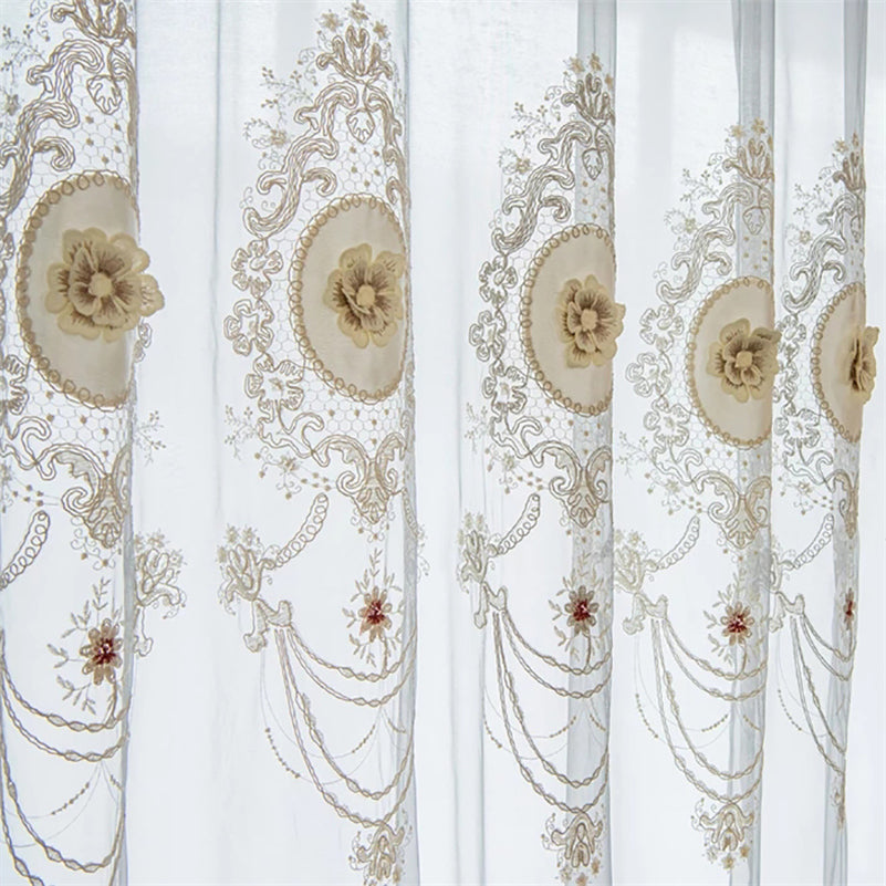 Vintage Embroidery Tulle Blackout Noble Sheer Curtain for Living Room Bedroom Window Decor Custom 2 Panels Drapes Breathable Voile