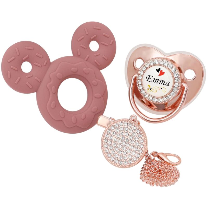Personalized Pacifier And Pacifier Clip Set With Name,Custom Pacifier,Custom Name & Chain,Silicone TeethersToys, Luxurious Ideal Gift For Newborns (Rose Golden)