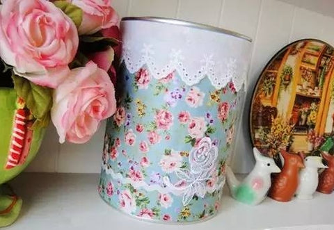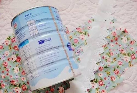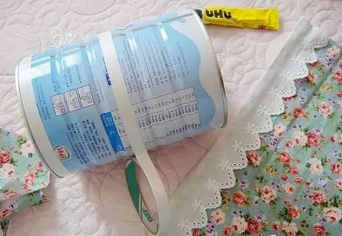 Material preparation: milk powder cans, floral cloth, lace and various decorations. This depends on personal preference. Double-sided tape and all-purpose tape.