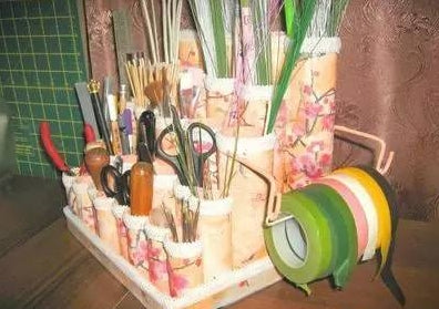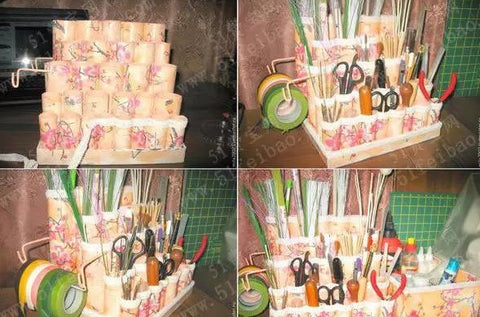 The remaining waste products of some sanitary products at home can also be used in DIY works that turn waste into treasures. Don’t we use many tools with different purposes and functions when doing handicrafts? Such a storage box made of waste products , which just provides us with a convenient means to better manage such tools separately.