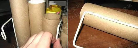 4. Insert the hook between the paper tubes and fix it with glue and tape.