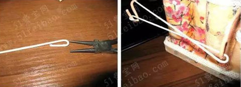 3. Use pliers to break the wire into a hook shape as shown in the picture below.