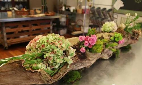 Imagine that after a tedious day at work, on your way home from get off work, you pass by a flower shop with such a creative floral artwork, and your mood will become much brighter. A mottled dead tree, whose trunk has been eroded by the years and is no longer intact, can become a good natural flowerpot. Put bright flowers inside to provide them with a warm and comfortable place to live, and once again have the novelty of spring. . A perfect piece of floral art with a Zen feel that is worth savoring.