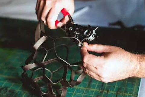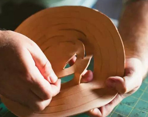 Step 2: Then dye the leather to the color you like and use a carpet knife to cut it into the look we want.