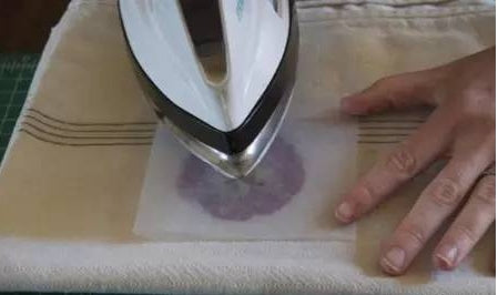 4. Place the wax paper on the ironing board or fabric, set the iron to medium and quickly iron over the wax paper to seal. This fuses the two layers of wax paper together. Repeat this step until all four squares of wax paper masking sheets are sealed.