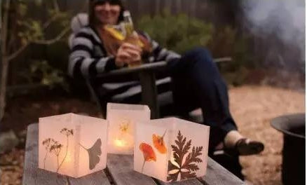 5. Place the two wax paper covers together. Adjust the cover so the side you want the outside of the paper lantern to face faces you (not the table). Cut a strip of tape an inch longer than the hood, place the tape between the edges where the two hoods touch and press it flat.