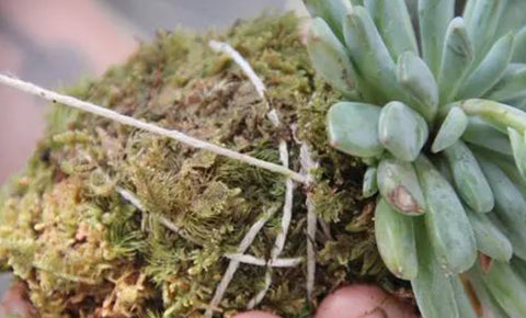 Place the plant roots in the center of the moss with the moss surface facing down, completely wrapping the roots with the moss and pressing lightly with your thumbs to make sure they are held together.