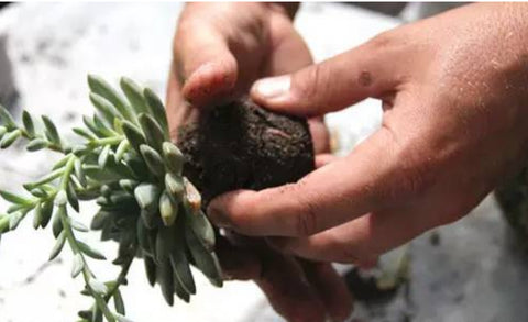 Remove the plant from the container, cover the roots with enough soil, and use your fingers to shape the roots into a round shape.
