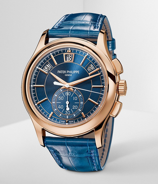 This is a Patek Philippe complication timepiece series 5905R-010 watch. This watch is equipped with an automatic mechanical movement, and there is a Patek Philippe mark on the movement. The case is made of 18k rose gold, and the square scale crocodile leather is hand-stitched. , with date display, week display, month display, annual calendar display, timing and flyback/retrograde functions