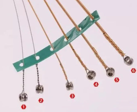 – Wound Strings: Strings with metal wires wound around the steel core, used for the 4th, 5th, and 6th strings.