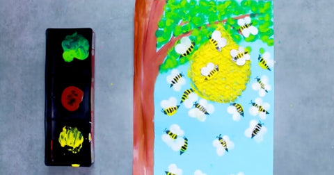 5. Then use fingerprints to print out the little bee and draw the bee’s markings.