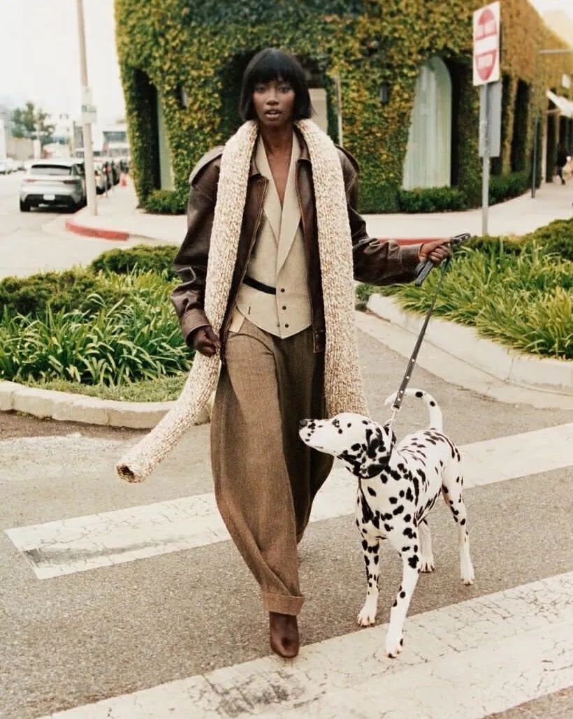 A brown solid color scarf can also be used with All black, which will make it more handsome.