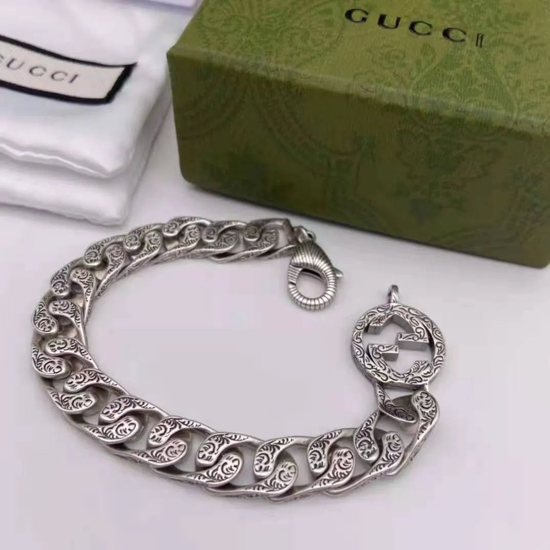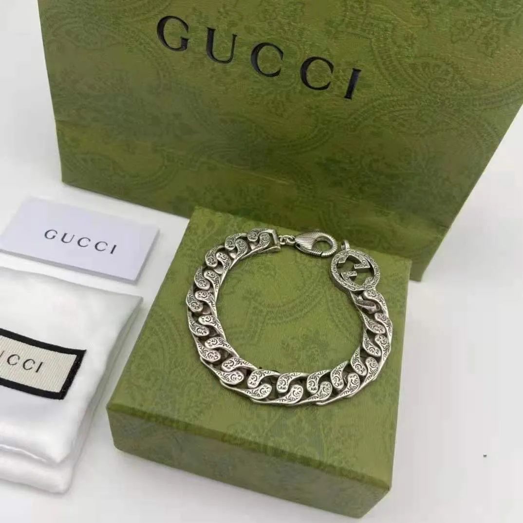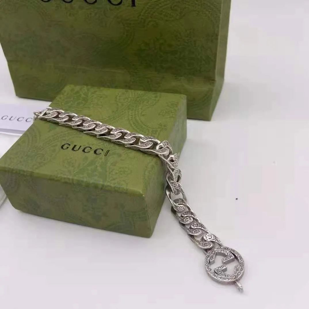 Gucci Distressed Retro Carved Double G Couple Bracelet