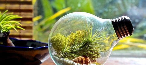 Put the plant into the glass bottle and install