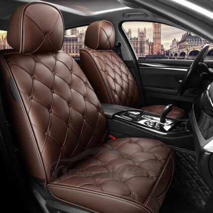 Car Seat Cover Water Proof Synthetic Leather Cushion with Built-in Lumbar Support Front and Back Fit for Sedan SUV Truck
