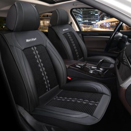 Car Seat Covers Full Coverage Soft Wear-resistant Durable Skin-friendly Man-made PU Leather & Ice Silk Breathable Materi
