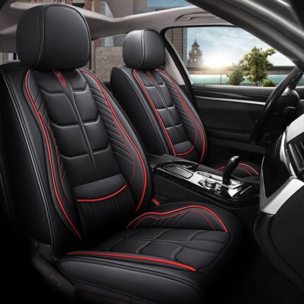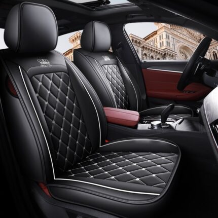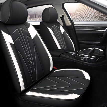 Durable Leather 5 Seats No Odor Wear Resistant Full Coverage Four Seasons Universal Seat Covers Compatible with Airbags