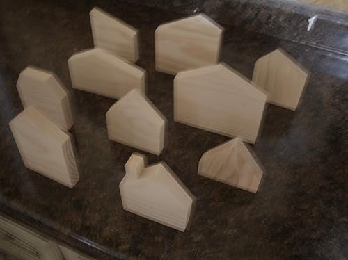 - listing includes 10 various sized unfinished pine wooden house shaped from 5 1/2″ high to 3 1/2″ high, 3 1/2″ wide to 5 1/2″ wide all are 3/4″ thick unfinished pine sanded o all sides