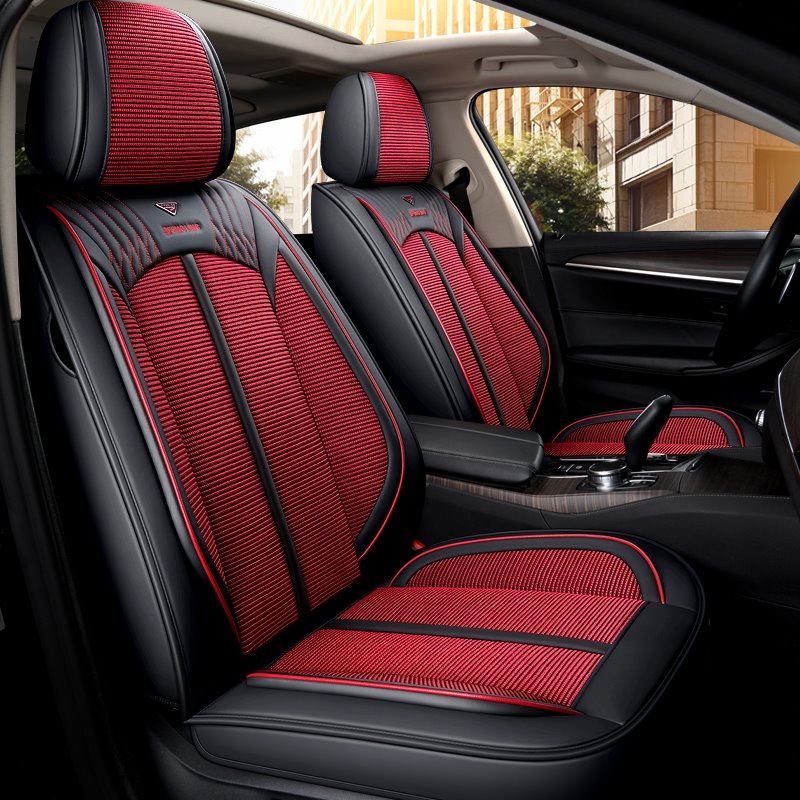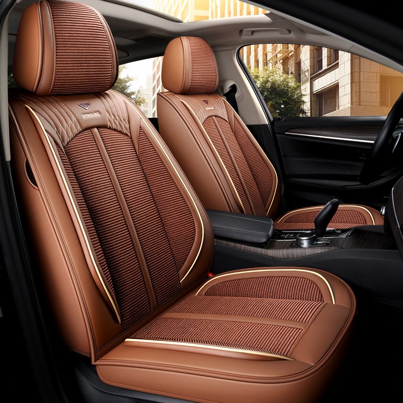 PU Stripe Cotton Business Seat cover Business Style 5-seater Full Coverage Skin-friendly & Wear-resistant Leather & Breathable Ice Silk Fabric Detacha $199.88