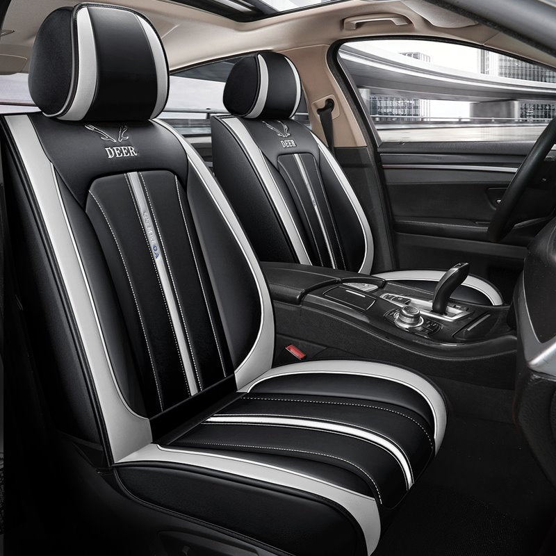 2 Headrests 5 Seats Universal Fit Seat Covers Wear Resistant Leather Skin Friendly Comfort Breathable Fabric Full Coverage Soft Wear-Resistant Durable Airbag Compatible 5-Seater Universal Fit Seat Covers