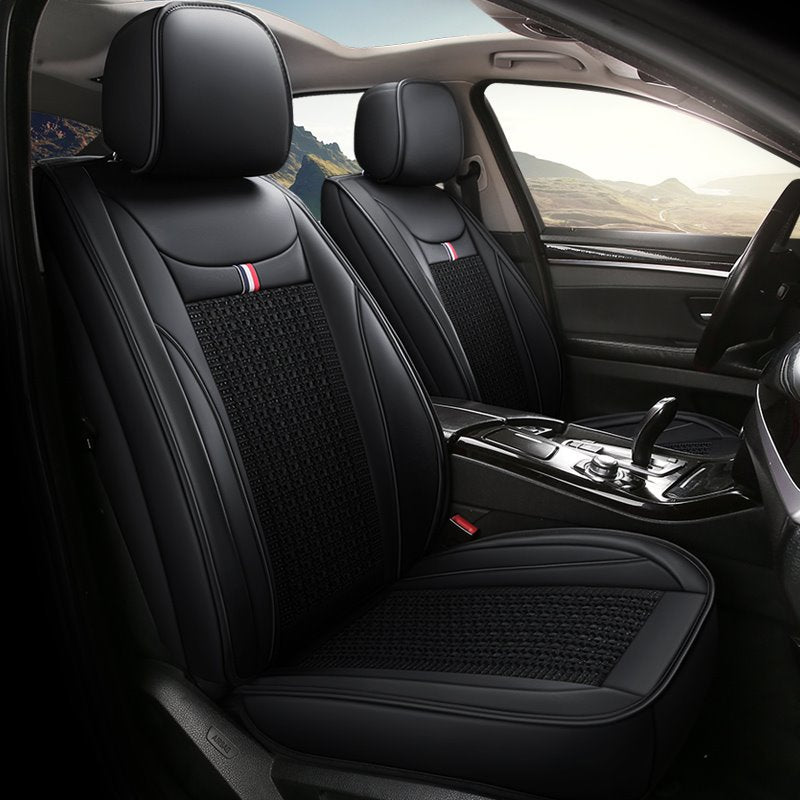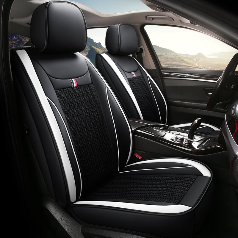 5 Seats Durable Leather Environmentally Friendly and Breathable Linen Material Security No Odor Stain Resistant Wear Resistant Full Coverage Four Seasons Universal Seat Covers