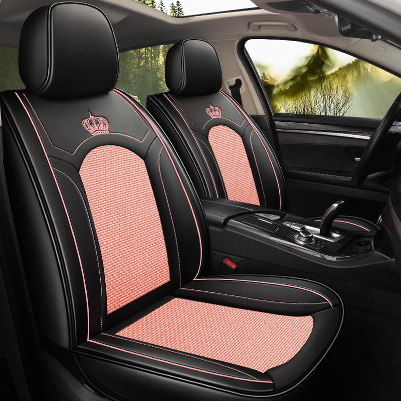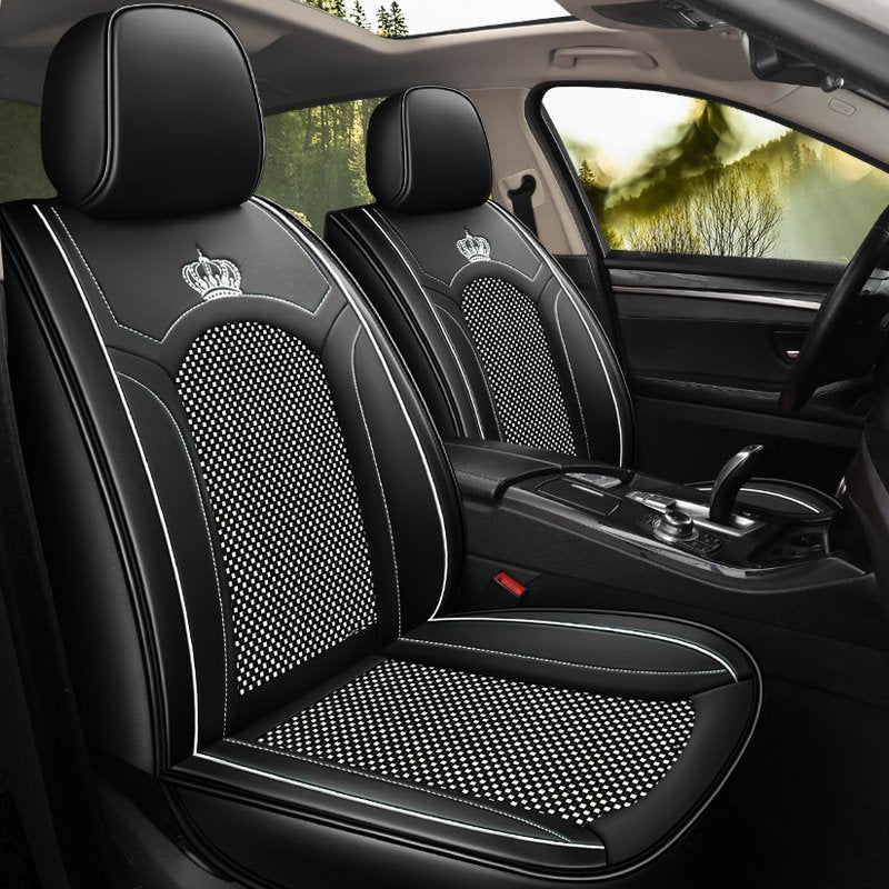 2 Headrests 5 Seats Universal Fit Seat Covers Wear Resistant Leather Skin Friendly Comfort Breathable Fabric Full Coverage Soft Wear-Resistant Durable Airbag Compatible 5-Seater Universal Fit Seat Covers
