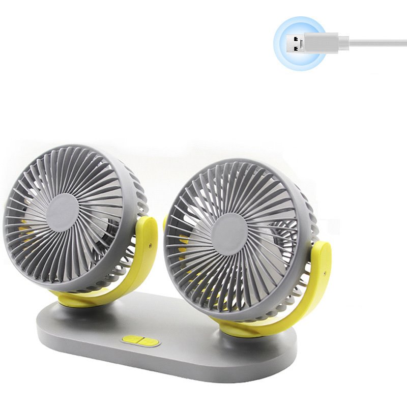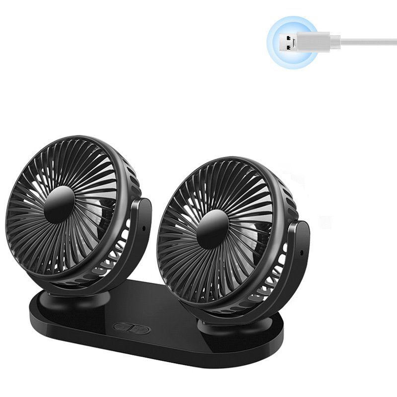 USB Car Fan Dual Head Fan for Backseat Air Circulator Fan with Strong Airflow Ultra Quiet Wide Angle Adjustable
