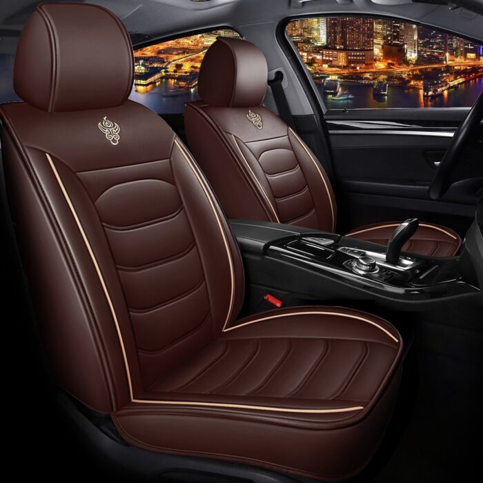 Simple Style Car Seat Covers Full Coverage Soft Wear Resistant Durable Skin Friendly Man Made Leather Airbag Compatible 5 Seater Universal Fit Seat Covers