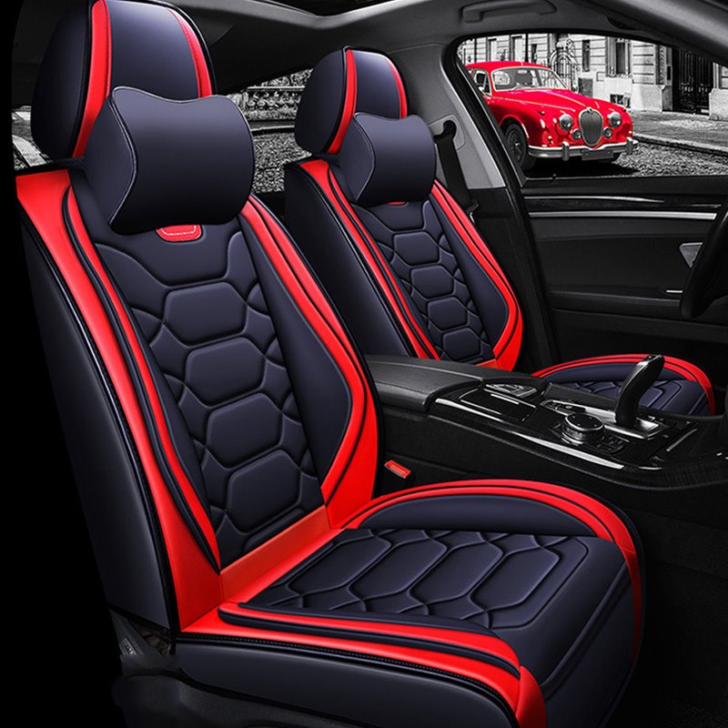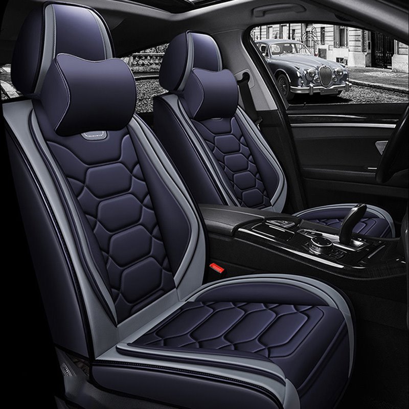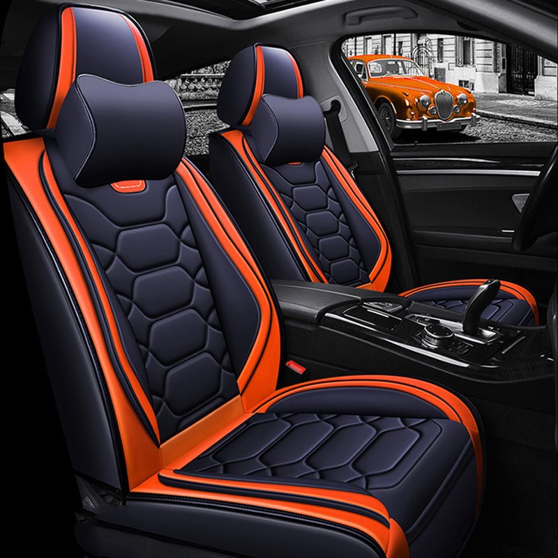 2 Headrests 5 Seats Universal Fit Seat Covers Wear Resistant Leather Skin Friendly Comfort Breathable Fabric Full Coverage Soft Wear-Resistant Durable Airbag Compatible 5-Seater Universal Fit Seat Covers