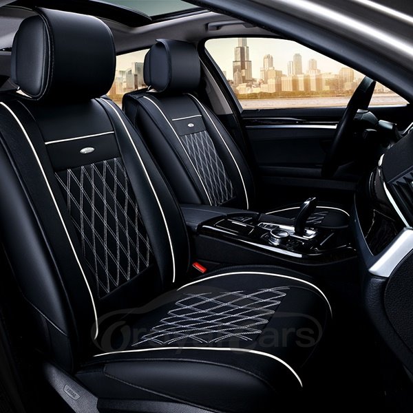 2 Headrests 5 Seats Universal Fit Seat Covers PU Leather Sport Seat Cover Full Coverage Soft Wear-Resistant Durable Skin-Friendly Man-Made PU Leather Airbag Compatible 5-Seater Universal Fit Seat Covers
