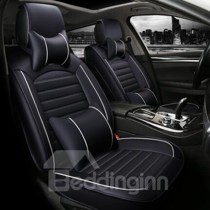 2 Headrests 5 Seats Universal Fit Seat Covers PU Leather Sport Seat Cover Full Coverage Soft Wear-Resistant Durable Skin-Friendly Man-Made PU Leather Airbag Compatible 5-Seater Universal Fit Seat Covers