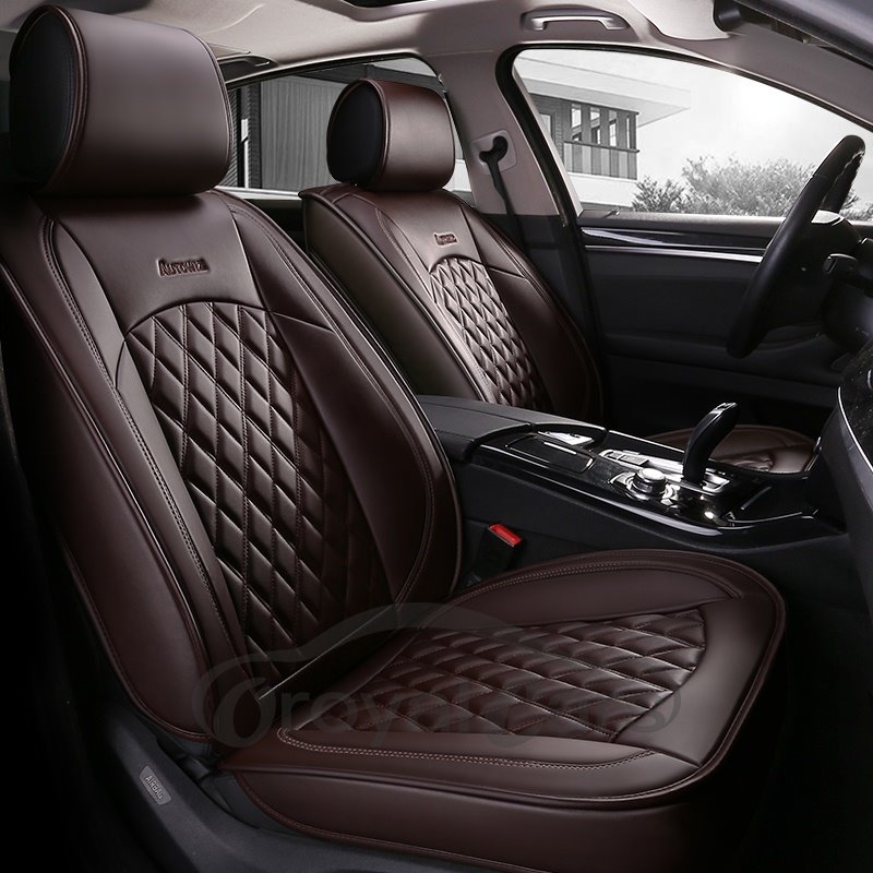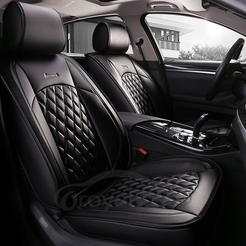2 Headrests 5 Seats Universal Fit Seat Covers Wear Resistant Leather Skin Friendly Comfort Breathable Fabric Full Coverage Soft Wear-Resistant Durable Airbag Compatible 5-Seater Universal Fit Seat Covers