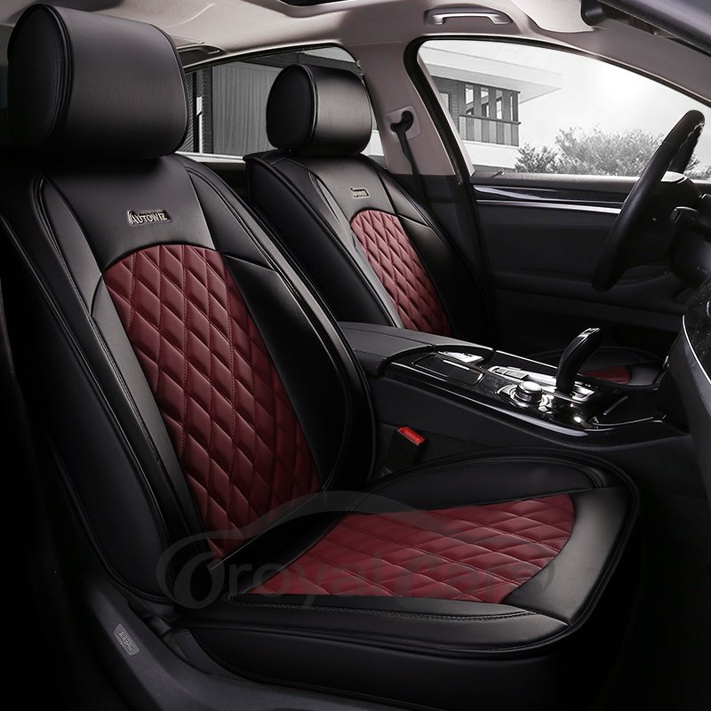 2 Headrests 5 Seats Universal Fit Seat Covers PU Leather Sport Seat Cover Full Coverage Soft Wear-Resistant Durable Skin-Friendly Man-Made PU Leather Airbag Compatible 5-Seater Universal Fit Seat Covers