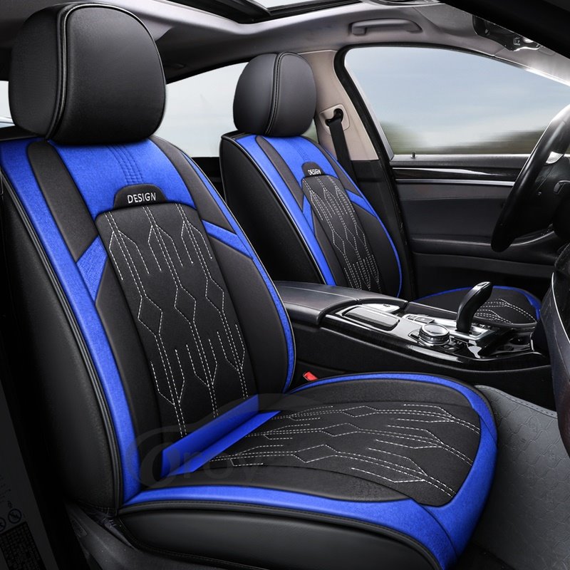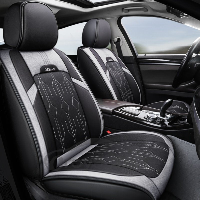 2 Headrests 5 Seats Universal Fit Seat Covers Wear Resistant Leather Skin Friendly Comfort Breathable Fabric Full Coverage Soft Wear-Resistant Durable Airbag Compatible 5-Seater Universal Fit Seat Covers