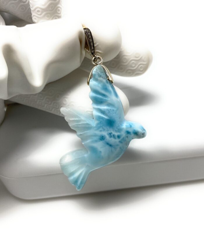 Pave Diamond Larimar Gemstone Sterling Silver Bird Pendant Jewelry at Wholesale Price.