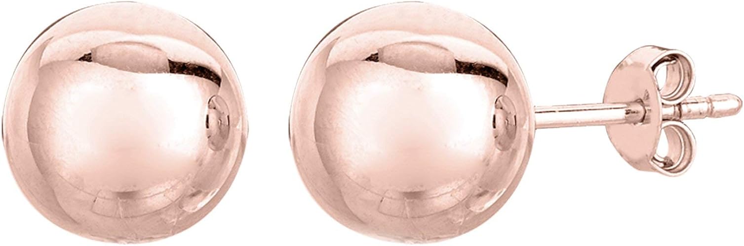 Home Ball 14K Rose Real Gold Ball Stud Earrings
