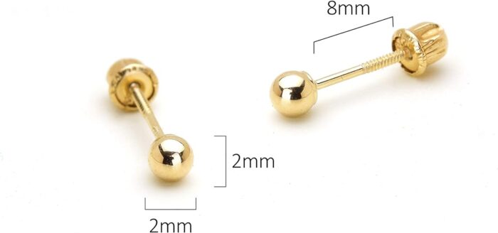 Be the first to review “14k Yellow Gold 2,3,4,5,6mm Plain Hollow Gold Ball Children Screw back Baby Girls Stud Earrings” Cancel reply