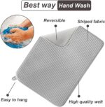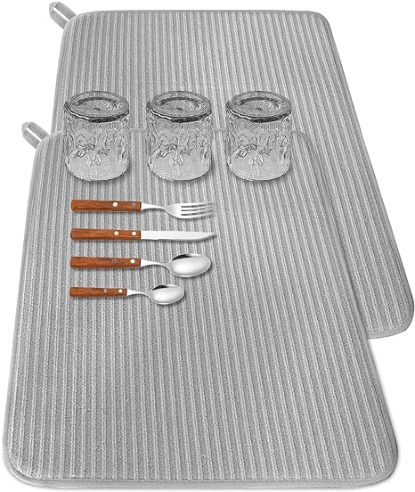 SUBEKYU Microfiber Dish Drying Mat for Kitchen Counter, Absorbent Dishes Drainer/Rack Pad for Countertop (Light Grey 2P)