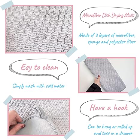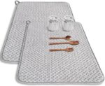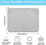 SUBEKYU Microfiber Dish Drying Mat for Kitchen Counter, Absorbent Dishes Drainer/Rack Pad for Countertop (Light Grey 2P)