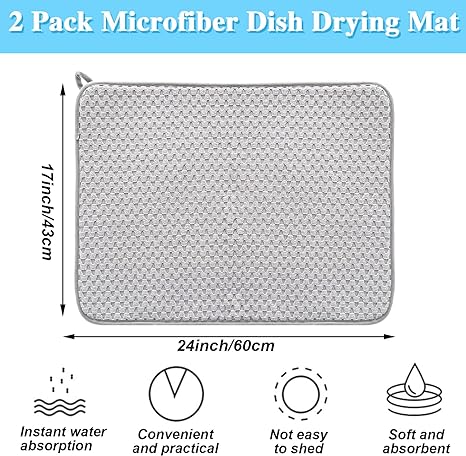 Be the first to review “2 Pack Microfiber Dish Drying Mat,24*17 inch Absorbent Dish Drainer Kitchen Counter,Large Size Dish Drying Pad for Countertops,Sinks,Draining Racks(Gray)” Cancel reply