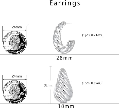 • Gift; Stunning chunky Silver hoop earrings fashion, is a very useful accessory brighten up your look, can add a touch of elegance and sophistication to your look. Suitable for daily Wearing, also a good choice for anniversary day, birthday, wedding, party, date, New Year Day, Valentine’s Day, Thanksgiving Day, Christmas Day, Boxing Day or other special Occasions.