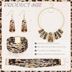 3 Pieces Leopard Necklace Earrings Bracelets Jewelry Set Women Bohemia Leopard Print Bib Chain Necklace Bracelet Print Jewelry Multi Layer PU Leather Wrist Cuff Wrap Bracelet Leopard Gift Accessories