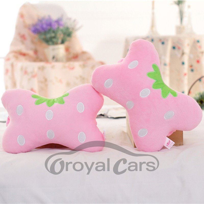This one pair pink strawberry design headrest pillow,Use soft velvet and plush material,It can protect your head and neck to the greatest extent.