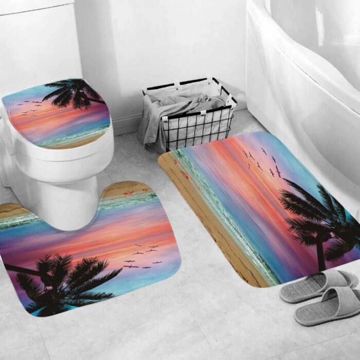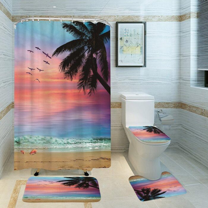Material:Polyester Shower Curtain Includes: Shower Curtain*1, Free Hooks3 PCS Includes: Floor mat*1, U-shaped mat*1, Toilet seat cover *1 Shower Curtain 3 PCS Includes: Shower Curtain*1, Floor mat*1, U-shaped mat*1, Toilet seat cover *1, Free Hooks