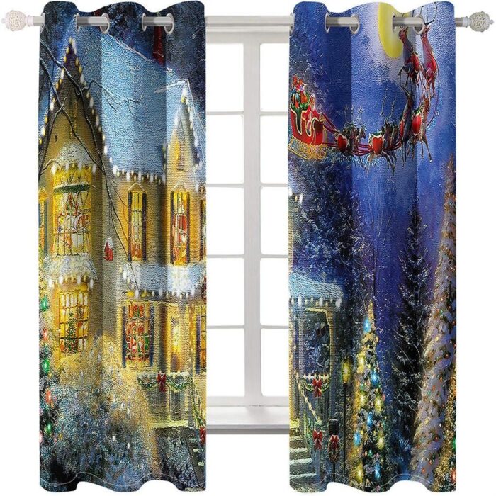 Have a wonderful time with this christmas curtain. The curtain can be mounted on any room for its fashionable design and also can prevent strong sunlight you don’t like. It’s easy to install to wash for its skillful process techniques.
