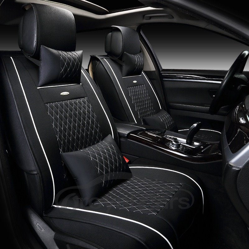 2 Headrests 5 Seats Universal Fit Seat Covers Wear Resistant Leather Skin Friendly Comfort Breathable Fabric Full Coverage Soft Wear-Resistant Durable Airbag Compatible 5-Seater Universal Fit Seat Covers